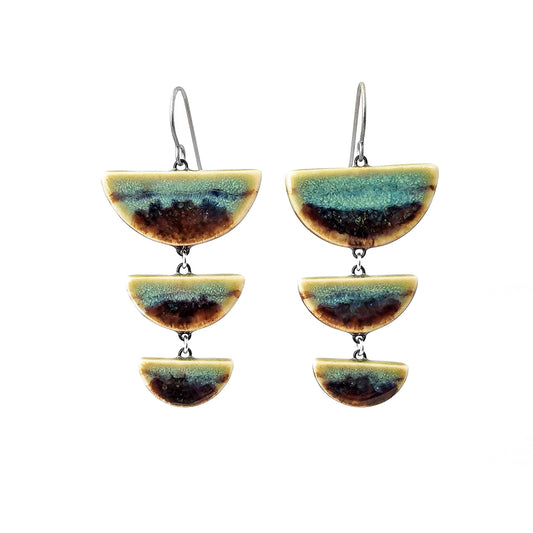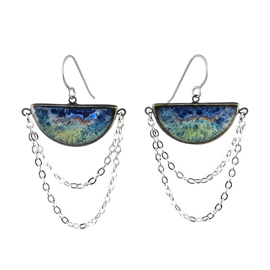 Draped Chain Glazed Half Moon Earrings