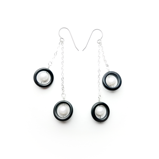 Porcelain and Pearls Double Drop Earrings
